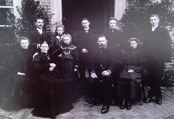 Ignatz mit Frau Anna Elisabeth und ihren 8 Kindern von Hubert Heinrich (ganz rechts) stammen alle Hillejans am Niederrhein ab. Von Bernhard (ganz links) stammen alle Wiggers bzw. Wessings aus Gescher Tungerloh-Pröbsting ab. |